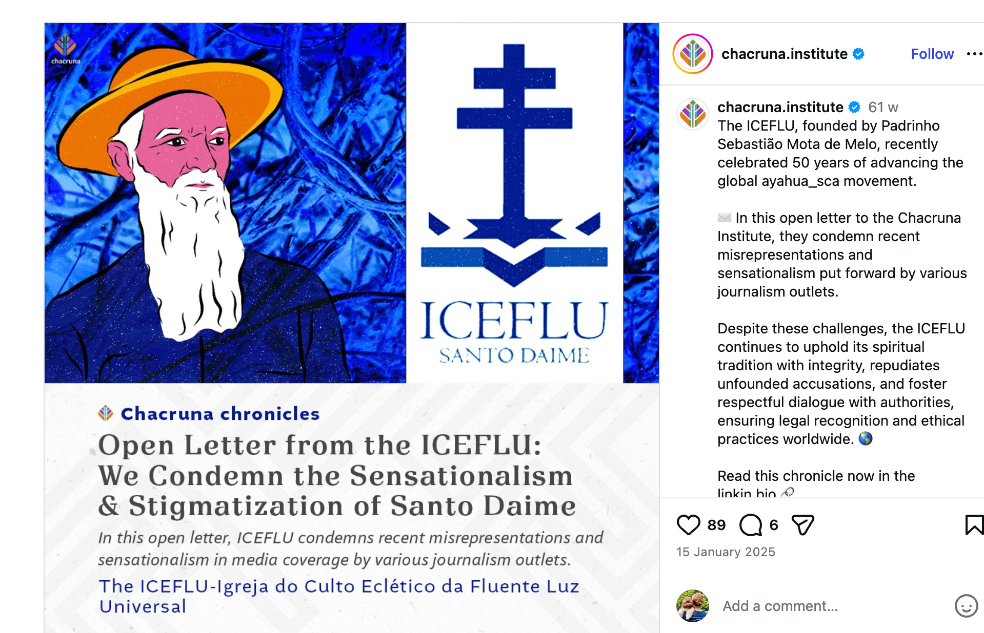 ICEFLU, the leading organisation in the Daime church, is trying to respond to the allegations. It published social media posts against abuse, telling victims to contact them, but these posts provoked hundreds of angry responses from church members and psychedelic activists. Here’s a sample of the (translated) responses from Brazilians: