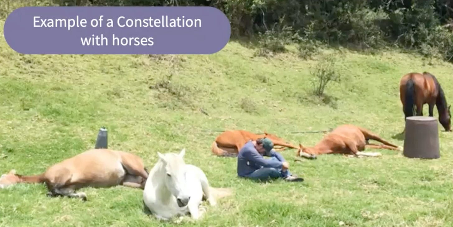 Family Constellations became very popular in Germany in the last few decades, and still is. “Bert Hellinger is Germany’s most prominent family therapist,” the newspaper Die Zeit declared in 2003. “He is a kind of Dalai Lama of the psychoscene.” It’s also popular in Mexico, South Africa, Spain and Brazil. Training to be a Family Constellations facilitator can last anything from a weekend to three years and costs up to $5000 a year. It’s used in organizational psychology and HR to resolve issues in companies. It’s used to help pets (‘pet constellations’). You can do it on water, do it with horses. Some people even use it as a method for psychedelic integration.