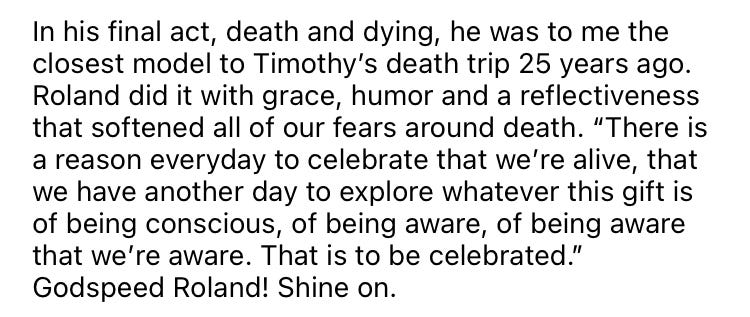 Two weeks ago, before Roland’s death, Johnson gave a talk on psychedelic ethics, and said this:
