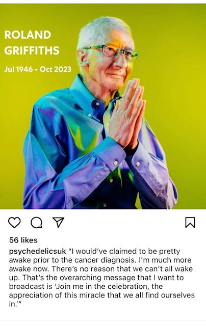 Last week, Roland Griffiths passed away, the person who arguably kickstarted the psychedelic renaissance with his 2006 paper, ‘Psilocybin can occasion mystical-type experiences’.