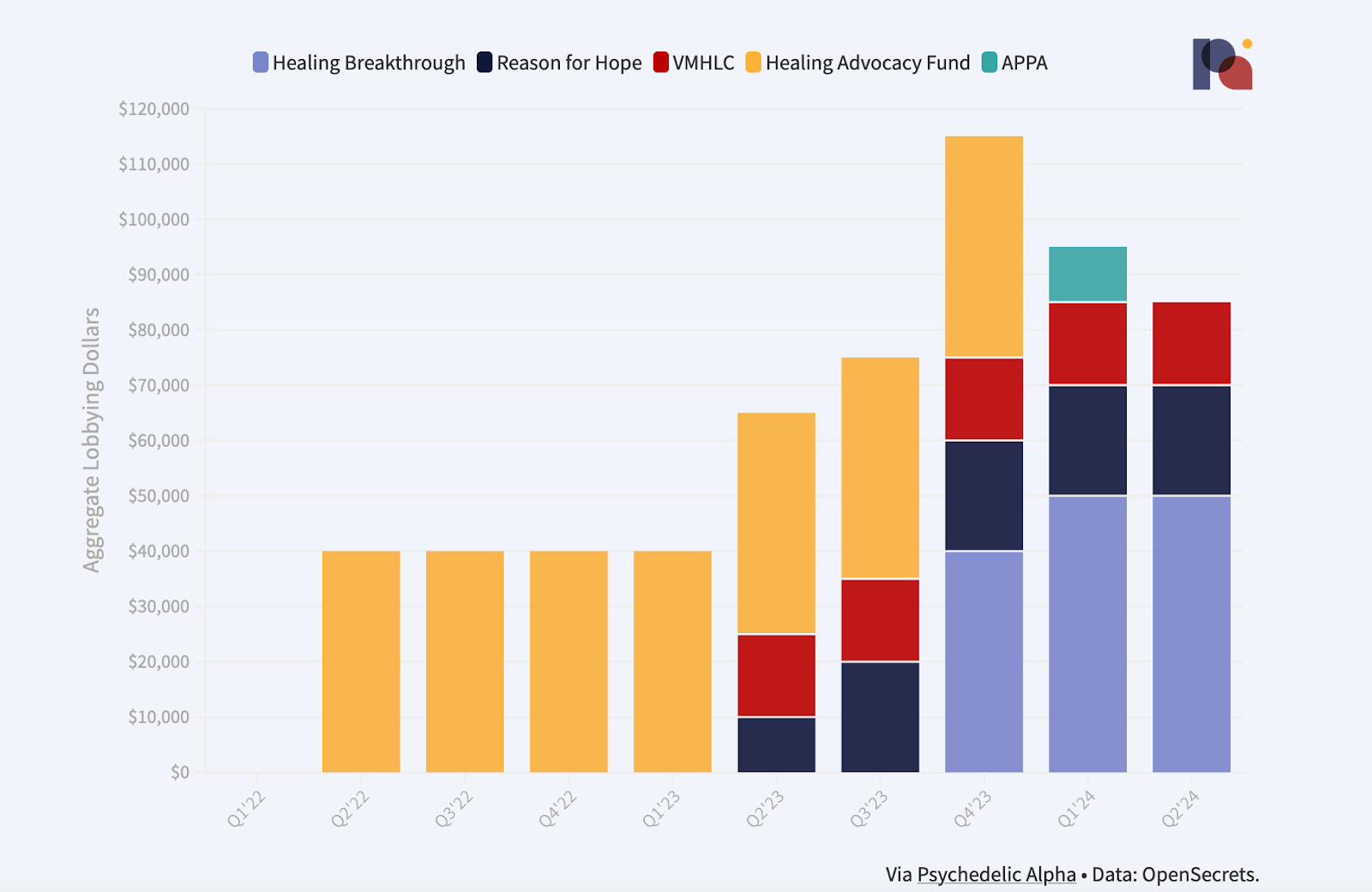 If you look at this excellent recent analysis by Psychedelic Alpha, what little psychedelic philanthropy money has been spent on federal lobbying has mainly gone to Healing Breakthrough and Reason to Hope to work on the Breakthrough Therapies Act (which hasn’t yet passed). Other NGOs active on the Hill, like the Psychedelic Medicine Coalition haven’t received any funding from PSFC members or, in the case of Apollo Pact, hardly any. Meanwhile, according to some estimates PSFC donors have spent $25-50 million on state initiatives.